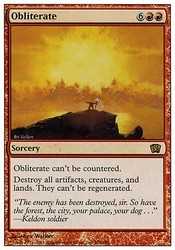 | Card Text | Obliterate can"t be countered. Destroy all artifacts, creatures, and lands. They can"t be regenerated. |