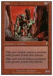 | Card Text | Okk can"t attack unless a creature with greater power also attacks. Okk can"t block unless a creature with greater power also blocks. |