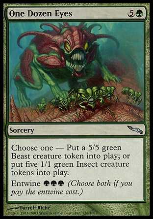 | Card Text | Choose one - • Put a 5/5 green Beast creature token onto the battlefield. • Put five 1/1 green Insect creature tokens onto the battlefield. Entwine |