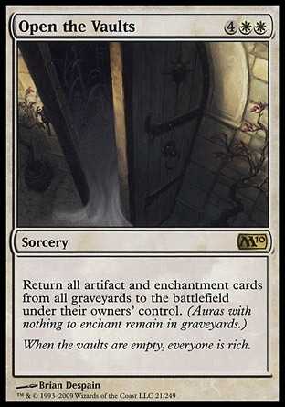 Card TextReturn all artifact and enchantment cards from all graveyards to the battlefield under their owners" control. (Auras with nothing to enchant remain in graveyards.)