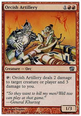 | Card Text | : Orcish Artillery deals 2 damage to target creature or player and 3 damage to you. |