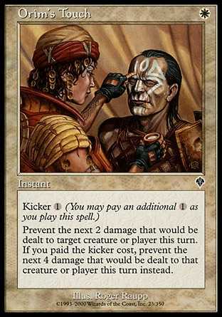 Prevent the next 2 damage that would be dealt to target creature or player this turn. If Orim"s Touch was kicked, prevent the next 4 damage that would be dealt to that creature or player this turn instead.