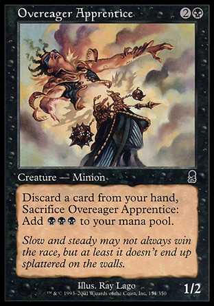 | Card Text | Discard a card, Sacrifice Overeager Apprentice: Add ![]() ![]() to your mana pool. |