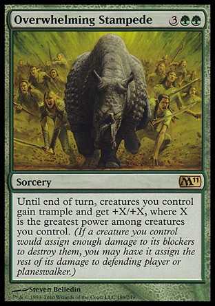 Card TextUntil end of turn, creatures you control gain trample and get +X/+X, where X is the greatest power among creatures you control.