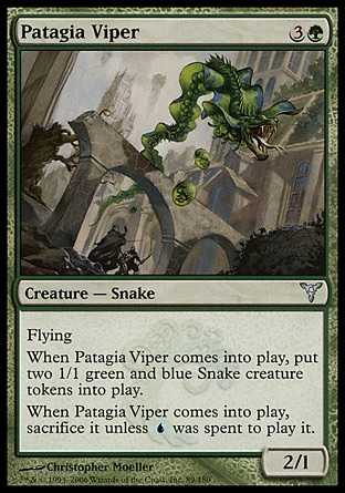 | Card Text | Flying When Patagia Viper enters the battlefield, put two 1/1 green and blue Snake creature tokens onto the battlefield. When Patagia Viper enters the battlefield, sacrifice it unless |