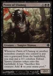 | Card Text | Whenever Pawn of Ulamog or another nontoken creature you control dies, you may put a 0/1 colorless Eldrazi Spawn creature token onto the battlefield. It has to your mana pool. |