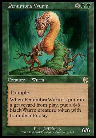 | Card Text | Trample When Penumbra Wurm dies, put a 6/6 black Wurm creature token with trample onto the battlefield. |