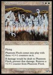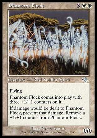 | Card Text | Flying Phantom Flock enters the battlefield with three +1/+1 counters on it. If damage would be dealt to Phantom Flock, prevent that damage. Remove a +1/+1 counter from Phantom Flock. |