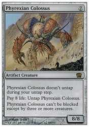 | Card Text | Phyrexian Colossus doesn"t untap during your untap step. Pay 8 life: Untap Phyrexian Colossus. Phyrexian Colossus can"t be blocked except by three or more creatures. |