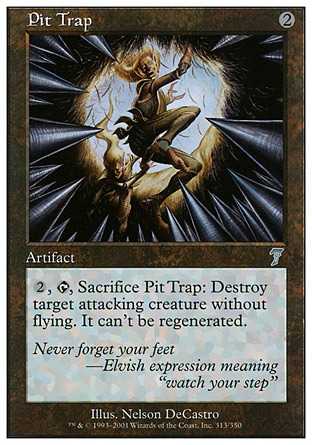 Card Text, , Sacrifice Pit Trap: Destroy target attacking creature without flying. It can"t be regenerated.