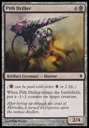 When Pith Driller enters the battlefield, put a -1/-1 counter on target creature.