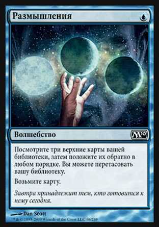 | Card Text | Look at the top three cards of your library, then put them back in any order. You may shuffle your library. Draw a card. |