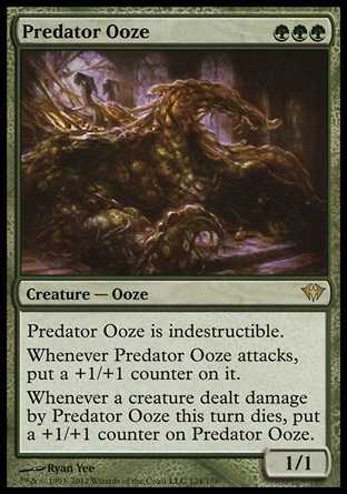 Whenever a creature dealt damage by Predator Ooze this turn dies, put a +1/+1 counter on Predator Ooze.