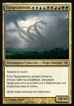 | Card Text | Protection from everything If Progenitus would be put into a graveyard from anywhere, reveal Progenitus and shuffle it into its owner"s library instead. |