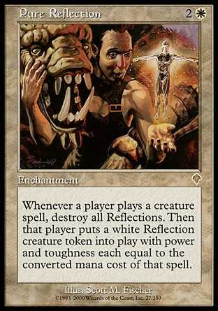 | Card Text | Whenever a player casts a creature spell, destroy all Reflections. Then that player puts an X/X white Reflection creature token onto the battlefield, where X is the converted mana cost of that spell. |