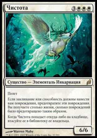 | Card Text | Flying If noncombat damage would be dealt to you, prevent that damage. You gain life equal to the damage prevented this way. When Purity is put into a graveyard from anywhere, shuffle it into its owner"s library. |