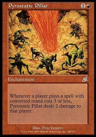| Card Text | Whenever a player casts a spell with converted mana cost 3 or less, Pyrostatic Pillar deals 2 damage to that player. |