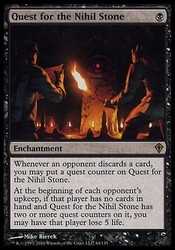 Card TextWhenever an opponent discards a card, you may put a quest counter on Quest for the Nihil Stone.