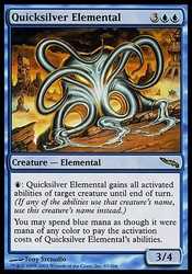 Card Text: Quicksilver Elemental gains all activated abilities of target creature until end of turn. (If any of the abilities use that creature"s name, use this creature"s name instead.)