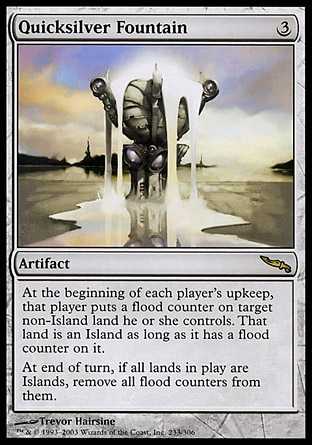 | Card Text | At the beginning of each player"s upkeep, that player puts a flood counter on target non-Island land he or she controls of his or her choice. That land is an Island for as long as it has a flood counter on it. At the beginning of each end step, if all lands on the battlefield are Islands, remove all flood counters from them. |