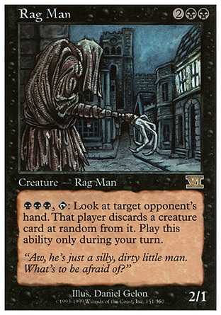 | Card Text | ![]() ![]() , : Target opponent reveals his or her hand and discards a creature card at random. Activate this ability only during your turn. |