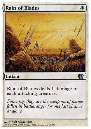 | Card Text | Rain of Blades deals 1 damage to each attacking creature. |