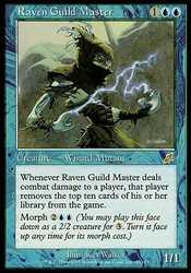 Card TextWhenever Raven Guild Master deals combat damage to a player, that player exiles the top ten cards of his or her library.