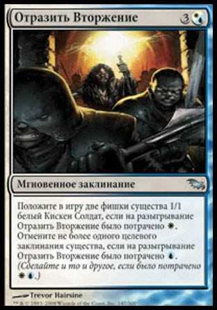 | Card Text | Put two 1/1 white Kithkin Soldier creature tokens onto the battlefield if was spent to cast Repel Intruders. Counter up to one target creature spell if was spent to cast Repel Intruders. (Do both if ![]() was spent.) |