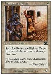 Card TextSacrifice Resistance Fighter: Prevent all combat damage target creature would deal this turn.