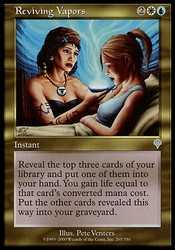| Card Text | Reveal the top three cards of your library and put one of them into your hand. You gain life equal to that card"s converted mana cost. Put all other cards revealed this way into your graveyard. |