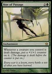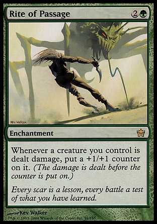 Card TextWhenever a creature you control is dealt damage, put a +1/+1 counter on it. (The damage is dealt before the counter is put on.)