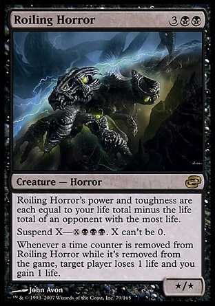 Whenever a time counter is removed from Roiling Horror while it"s exiled, target player loses 1 life and you gain 1 life.