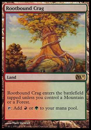 | Card Text | Rootbound Crag enters the battlefield tapped unless you control a Mountain or a Forest.