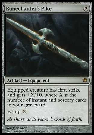 | Card Text | Equipped creature has first strike and gets +X/+0, where X is the number of instant and sorcery cards in your graveyard. Equip |