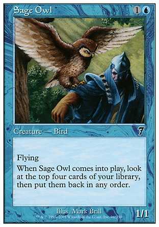 | Card Text | Flying When Sage Owl enters the battlefield, look at the top four cards of your library, then put them back in any order. |