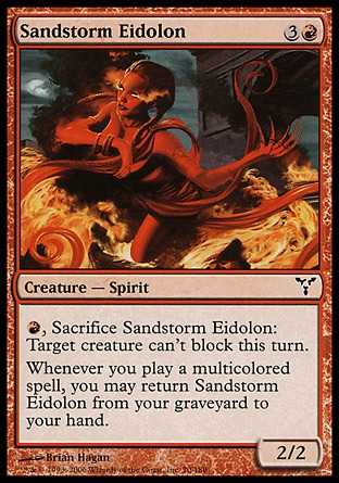 | Card Text | , Sacrifice Sandstorm Eidolon: Target creature can"t block this turn.Whenever you cast a multicolored spell, you may return Sandstorm Eidolon from your graveyard to your hand. |