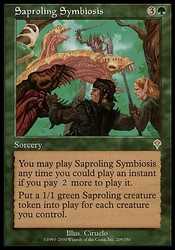 | Card Text | You may cast Saproling Symbiosis as though it had flash if you pay more to cast it. (You may cast it any time you could cast an instant.)Put a 1/1 green Saproling creature token onto the battlefield for each creature you control. |