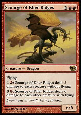 : Scourge of Kher Ridges deals 6 damage to each other creature with flying.