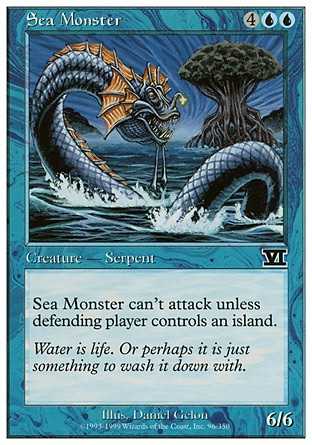 | Card Text | Sea Monster can"t attack unless defending player controls an Island. |