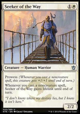 Whenever you cast a noncreature spell, Seeker of the Way gains lifelink until end of turn.