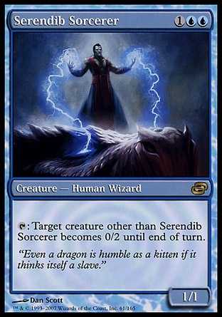 | Card Text | : Target creature other than Serendib Sorcerer has base power and toughness 0/2 until end of turn. |