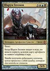 When Sharuum the Hegemon enters the battlefield, you may return target artifact card from your graveyard to the battlefield.