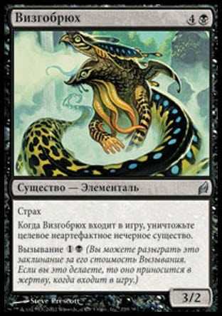 | Card Text | Fear (This creature can"t be blocked except by artifact creatures and/or black creatures.) When Shriekmaw enters the battlefield, destroy target nonartifact, nonblack creature. Evoke |
