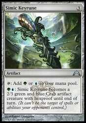 : Simic Keyrune becomes a 2/3 green and blue Crab artifact creature with hexproof until end of turn. (It can"t be the target of spells or abilities your opponents control.)