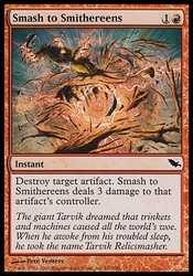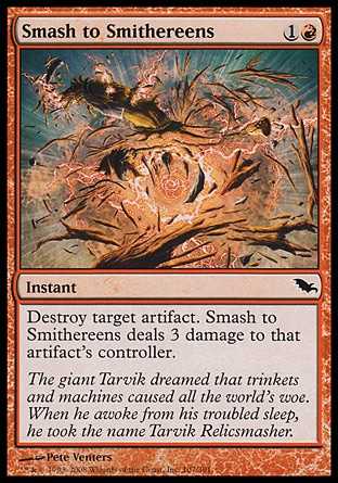 | Card Text | Destroy target artifact. Smash to Smithereens deals 3 damage to that artifact"s controller. |