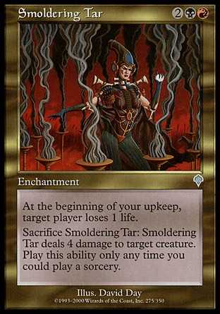 | Card Text | At the beginning of your upkeep, target player loses 1 life. Sacrifice Smoldering Tar: Smoldering Tar deals 4 damage to target creature. Activate this ability only any time you could cast a sorcery. |