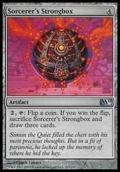 | Card Text | , : Flip a coin. If you win the flip, sacrifice Sorcerer"s Strongbox and draw three cards. |