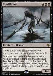 | Card Text | Delve (Each card you exile from your graveyard while casting this spell pays for .)If a creature card with flying was exiled with Soulflayer"s delve ability, Soulflayer has flying. The same is true for first strike, double strike, deathtouch, haste, hexproof, indestructible, lifelink, reach, trample, and vigilance. |