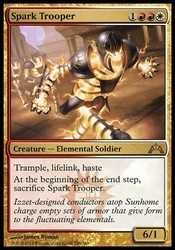 | Card Text | Trample, lifelink, haste At the beginning of the end step, sacrifice Spark Trooper. |