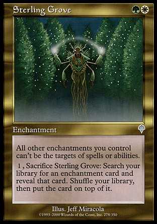 , Sacrifice Sterling Grove: Search your library for an enchantment card and reveal that card. Shuffle your library, then put the card on top of it.
